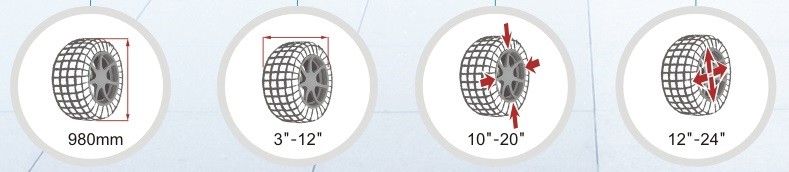 | Largura da roda | 3' - 12' | 3' - 12' | 3' - 12' | 3' - 15' | 3' - 15' |