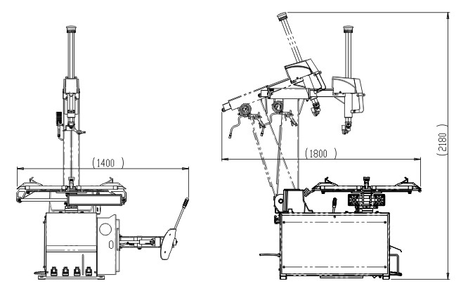 1) O cambiador automático do pneu, a inclinação para trás e para a frente da coluna e do fechamento da coluna podem ser terminados pneumaticamente.