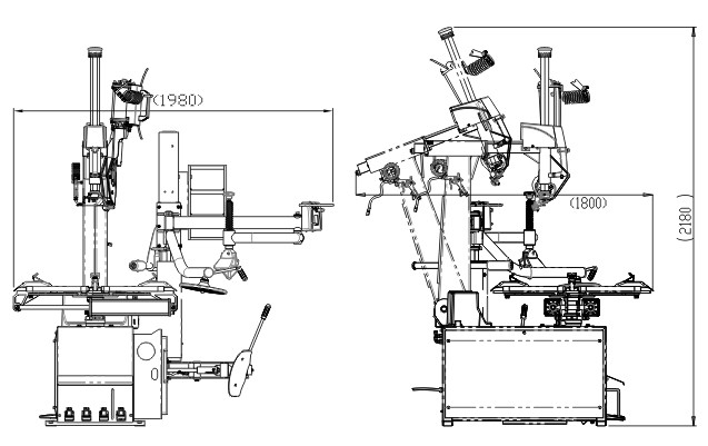 1) O cambiador automático do pneu, a inclinação para trás e para a frente da coluna e do fechamento da coluna podem ser terminados pneumaticamente.