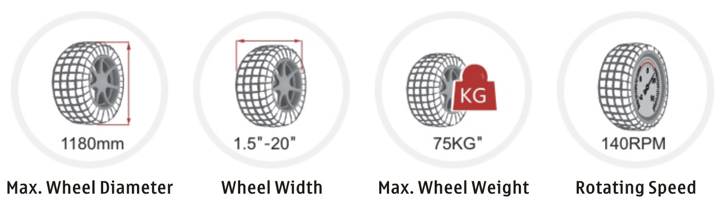 | Diâmetro de roda máximo | 1000mm | 1180mm | 1180mm | 1180mm | 1180mm |