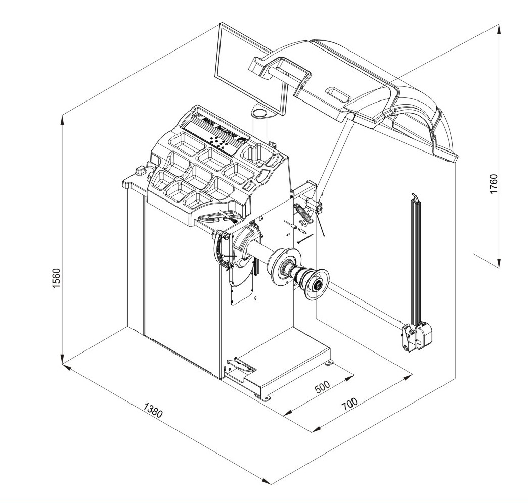Especificação técnica de equilibrador de roda de WB-980 LCD: