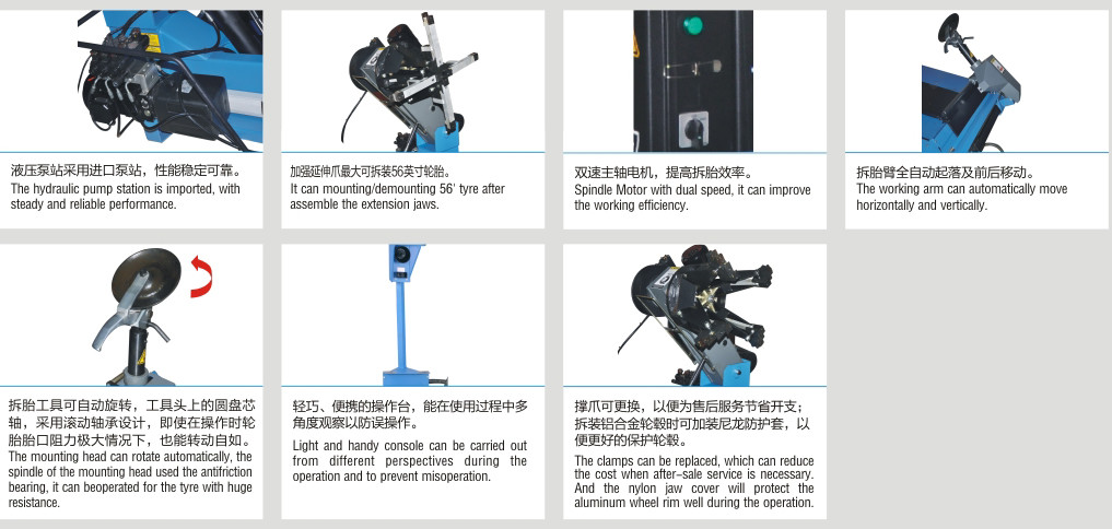 3) A ferramenta pode automático gerencie. O eixo na cabeça de montagem, projeto do rolamento do rolamento do uso, pode ser usada para o pneu com resistência enorme.